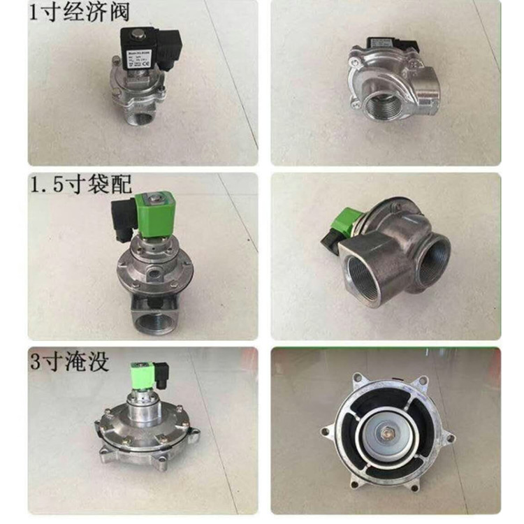 膜片把電磁脈沖閥分成前、后兩個氣室,當接通壓縮空氣時,壓縮空氣通過節(jié)流孔進入后氣室,此時后氣室壓力將膜片組件緊貼閥的輸出口,電磁脈沖閥處于“關閉”狀態(tài)。脈沖噴吹控制儀的電信號使電磁脈沖閥銜圃后移,閥后氣室放氣孔打開,后氣室迅速失壓,膜片組件后移,壓縮空氣通過閥輸出品噴吹,電磁脈沖閥處于“開啟”狀態(tài)。脈沖嘞吹控制儀電信號消失,電磁脈沖閥銜圃復位,后氣室放氣孔關閉,后氣室壓力升高使膜片組件緊巾閥的輸出口,電磁脈沖閥又處于“關閉”狀態(tài)。